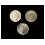 (3) Silver Peace Dollars 1922