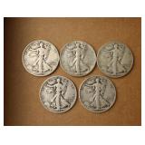 (5) Walking Liberty Half Dollars