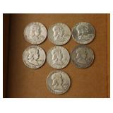 (7) Franklin Half Dollars 1963-D, 1958, 1963, 1951-S, 1955 1950-D 1954-S