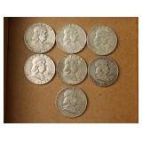 (7) Franklin Half Dollars 1959, 1958, 1955, 1955, 1954-D, 1950, 1950