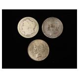 Liberty V nickels, Kennedy half dollar, Jefferson nickels