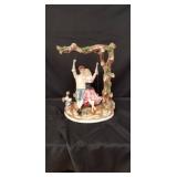 - Lot # 7 - Vintage Large Capodimonte Porcelain " Lovers on a Swing" Figurine
