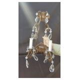 - Lot # 25 - Two Gorgeous Vintage Metal Wall Sconces - Distressed Metal with Cut Glass Prisms