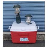 - Lot # 39 - Two Coleman Propane Lanterns w/ Rubbermaid Cooler