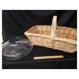 - Lot # 45 - Large weaved basket and glass terrarium bowl