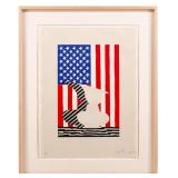 - 2043 JASPER JOHNS "UNTITLED" (FLAG AND VASE) LINOCUT IN COLOR HAND SIGNED