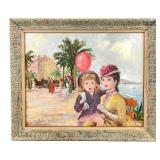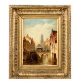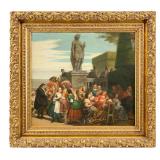 - 2398 ANTIQUE SIGNED ITALIAN MARKET SCENE OIL ON CANVAS