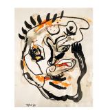 - 2046 KAREL APPEL "UNTITLED" (ABSTRACT FACE) OIL, WATERCOLOR & PASTEL ON PAPER