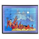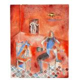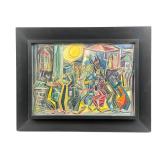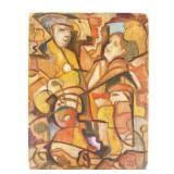 - 2417 SIGNED ABSTRACT JEWISH CELEBRATION WATERCOLOR ON BOARD