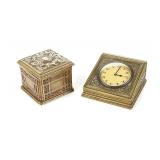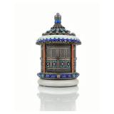 - 2430 ANTIQUE CHINESE JADE SILVER CLOISONNE TEA CADDY
