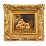 - 2360 JOHANNA GRELL SHEEP AND FOWL IN A BARN OIL ON PANEL