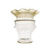 - 2380 H.C. FRY GOLD THREADED CONTROLLED BUBBLE RUFFLED ART GLASS VASE