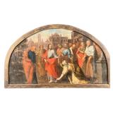 - 2393 ANTIQUE JESUS AND HIS DISCIPLES OIL ON CANVAS MOUNTED TO BOARD
