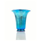 - 2420 STEUBEN BLUE AURENE FLARED RIBBED GLASS VASE