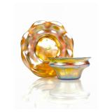 - 2422 LOUIS COMFORT TIFFANY GOLD IRIDESCENT FAVRILE FINGER BOWL & UNDER PLATE
