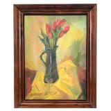 - 2452 DAVID BURLIUK TULIPS IN A VASE OIL ON BOARD