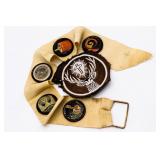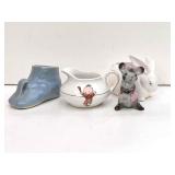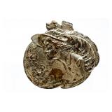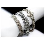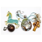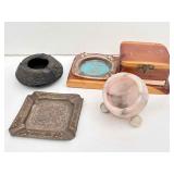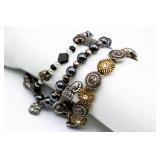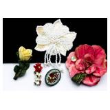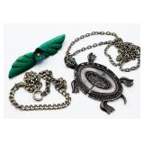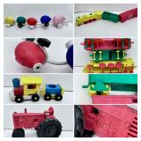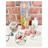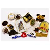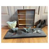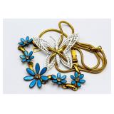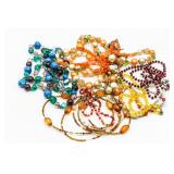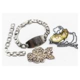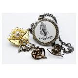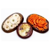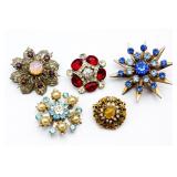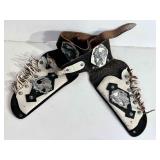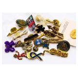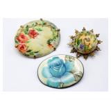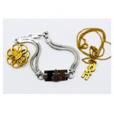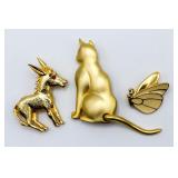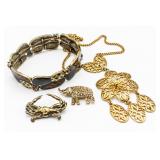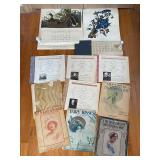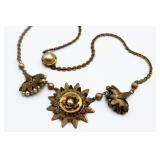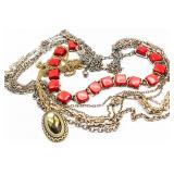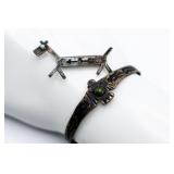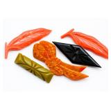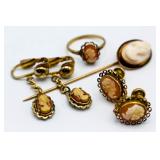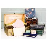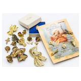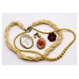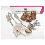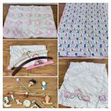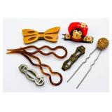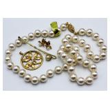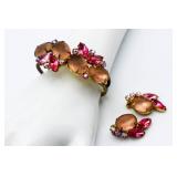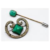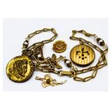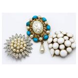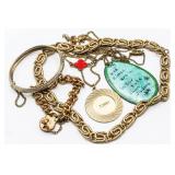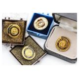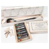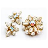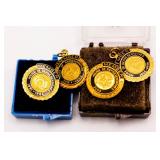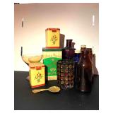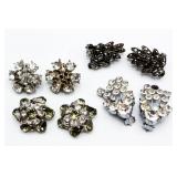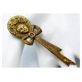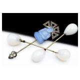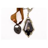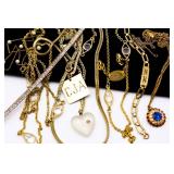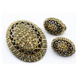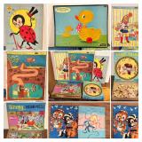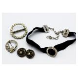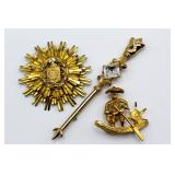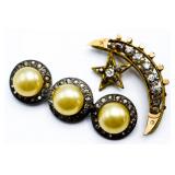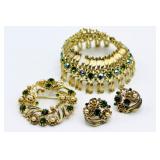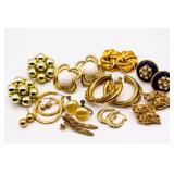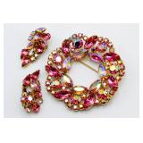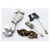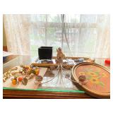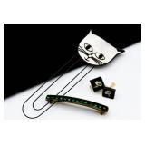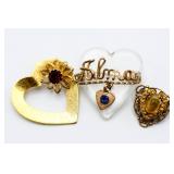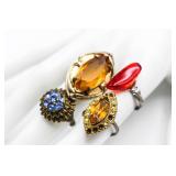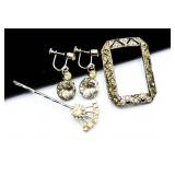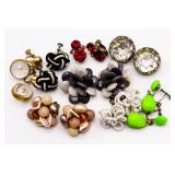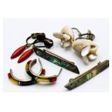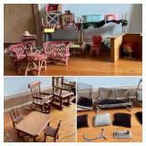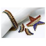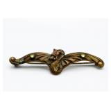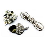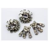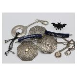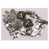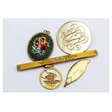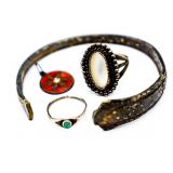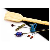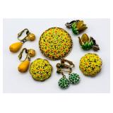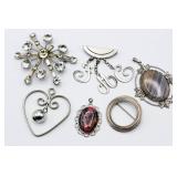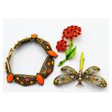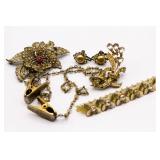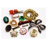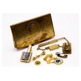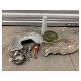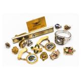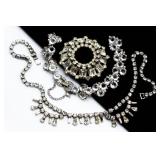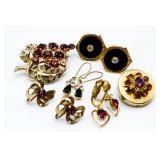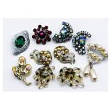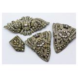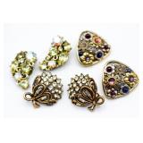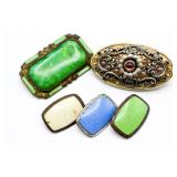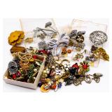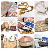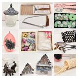 Incredible precious & semi-precious jewelry, Bakelite jewelry, vibrant vintage board games, antique and vintage advertising, toys, furniture, store fixtures, beer signs, prints, paintings, glassware, figurines, knick knacks and so much more! Pickup: Thursday, July 6th; 10AM-6PM Located in: Independence, MO 64052 1 Kitty-Cat Child Size Faux Watch Bracelet Child sized wrap bracelet measures 1.5" diam. in a cream color with deco style faux watch face and red bead google eyes. Vintage, some detail worn away on face. 2 Two Vintage Floral Pendants on White Chains Two 2" floral compositions, ornate white frame pendants on white enameled chains. Each chain is 24". 3 Limoges Ceramic Portrait Brooch 2.5" Gold tone framed pin features a female portrait on ceramic, by Limoges, France. 4 Limoges Round Ceramic Portrait Brooch 2" Gold tone framed, painted female portrait. By Limoges, France. 5 Limoges Pearl Bead Framed Portrait Earrings Pair of clip on earrings, round 1" porcelain matched portraits, framed in pearly beads on gold tone. By Limoges, France. 6 Sarah Coventry Flower Brooch and Earrings Set Vibrant, retro three piece brooch and clip on earrings set by Sarah Coventry. Pieces measure 1.5" to 3". Color enamels on silver tone. Great condition. 7 Bronze Color and Rhinestone Dragon Tie Pin 2.5" vintage pin depicts a dragon with green gemstone eyes. Bronze finish. 8 Unique Bronze Ring with Vibrant Color Stone This delicate bronze colored ring is approximately size 5 with a boldly colored red and metallic chartreuse .5" stone. May be hand painted. No markings. 9 Bold Red Enamel Cuff Bracelets With Buckle Clasp Two red enamel on gold tone vintage cuff bracelets with buckle closure. Some scratched wear on surface. 2.25" diameter. 10 Three Pair of Sterling Silver Pierced Earrings 1" crescent shapes (13g), .5" double drop earrings with pearly stones (4g), and .75" rectangular design with inlays (3.5g). All are vintage, sterling silver. 11 Fantastic Nouveau Baby with Bonnet, Embellished Brooch 3" gold tone pin depicts a baby face with bonnet and long bow, embellished with clear rhinestones and art nouveau design features. Very nice vintage condition. 12 Funky and Floral Vintage Clip On Earrings Mushroom caps, carved polymer floral designs and rosettes, with bits of rhinestone accent. Some aged coloring and a missing stone. Pieces range in size from .5" to 1.5", not branded. 13 Art Nouveau Pins with Carved Designs on Wood Three brooches featuring cameo and floral carved celluloid designs on wood. Good condition and color, ranging in size from 1.5-2.5". 14 Brass Tone Buckle and Brooch with Orange Stones Vintage 2" circular buckle accessory and 3" flower brooch are both full of warm orange stones on brass tone design. The flower brooch is missing a few tiny, golden yellow stones. 15 Two Gold Tone Strawberry Pins Two pins, 2.5" each. Not branded, the open lattice strawberry shapes are finished in gold tone. 16 Glitzy Vintage Brand Clip On Earrings All pieces are approx 1", in great condition. The beautiful acorns are full of clear stones with a bronze tone, by Trifari. Gold tone drop shapes with glittering yellow and borealis crystals, signed Lisner. The multicolor floral patterned earrings, embellished with beads and gems, are Michal Golan. 17 Sparkly Rhinestone Clip On Costume Earrings Both pair of clip on earrings are in great condition with brilliant clear rhinestones of various shape and cut. The round, spiraled design is marked Weiss, and the other pair is signed Bogoff. 18 Colorful and Cute Rhinestone Flower and Starburst Pins Five vintage pins, approximately 1"-2" range. The tiniest is signed Coro and is missing some stones, the others are in very good condition. 19 Beautiful Iridescent Pink Brooch and Earrings Set This very nice set includes 1.5" gold tone clip on earrings and a bold 2" brooch, covered in lustrous pink and iridescent, borealis crystals. 20 Vivid Enameled and Embellished Flowers Three bold flower pins in colorful enamels, all great condition. Approximately 1.5 to 2.5 inches with sparkly crystal and pearl accents. 21 Dazzling BSK Maple Leaf Brooch and Earrings Very nice set includes clip on earrings with 2.5 " brooch, branded BSK. All pieces are full of faceted, tri color crystals on a pewter finish maple leaf design. 22 HAR Vintage Pearl and Crystal Bead Brooch with Earrings Metallic finishes, pearly grey beads, and sparkling, clear crystals are all crammed into this matched brooch and clip on earrings set. 1-2", vintage, HAR signed. 23 Dainty, Sterling Silver and Mother of Pearl Deco Pendant Mother of pearl cabochon framed in lovely sterling silver, 1 inch art deco style pendant. Comes on a delicate 16 inch silver chain. 24 Aurora Borealis Rhinestone Brooch and Earrings Set Pieces range from 1.25 to 2 inches. Matched brooch with clip on earrings full of colorful, faceted aurora borealis gems on gold tone finish. Great condition. 25 Ornate Rhinestone and Green Beaded Accessory Suite This set is SO cute, and includes a dainty 2" diameter clasp bracelet, matched necklace, and screwback non pierced earrings. All pieces share the same creamy jade green baubles and rhinestone embellished design. 26 Whitehead and Hoag Co. Antique Kansas City Watch Fob 2.5" watch fob, made by The Whitehead and Hoag Company of Newark, NJ. Early 20th century Kansas City "Heart of America" rare design features a wagon, train, and eagle details, with red enameled heart. 27 Three Sets of Beautiful Art Deco Rhinestone Adornments One item is a fabulous 3.25" convertible brooch which holds two detachable shoe clips. All pieces range from 1.25- 3" individually. They are missing a few small stones and some loose stones are contained in the package. The lovely triangular shoe clips with a bee-like center detail, and the smallest five sided shapes, have some minor discoloration but really elegant designs. **A match to the small 5 sided clip was found and added to this lot, so it may not be shown in the initial photos,