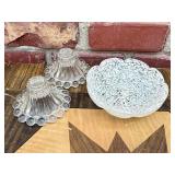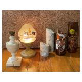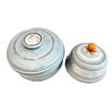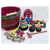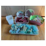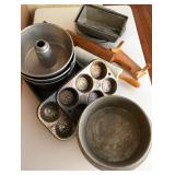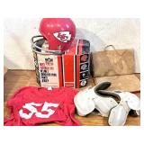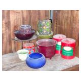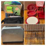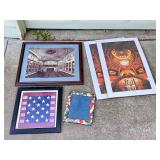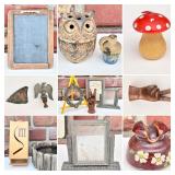 Oil Landscape on Canvas 48 x 36, family art Oil Angel Poster Board, 57 x 37, family art, rips and tears Missouri Scenery Poster, 32 x 23, stains and tears Jesus Christ Posters, multiple copies American Landmarks and Flags Posters Old Calendars, some from Kansas City businesses Photo Frames This lot is located in the basement and must be carried upstairs. If you don't believe you can haul it out alone, you will need to bring help. 1804 Wood Decor Group of wood like items includes barrel, bottle, dog, bird pictures, chalkboard, organizer and more. 1807 Candles and Holders Variety of decorative candles and holders, some unused, some scented. 1811 Assorted Home Decor Assortment of ceramic and resin trinkets and decor including sun vase, strawberry pot, bird bath, leprechauns, monkeys, and more. 1812 Vanity Items Box of items for your vanity include a lidded heart jar with potpourri, a perfume bottle, heart shaped box, window hanging, apothecary jar glass, and more. 1818 Vintage Christmas Golden Press Books Group of Christmas books including vintage Golden Press books, Southern Living, Martha Stewart, and Ideals Publishing Co. 1823 Office Supply Essentials Vintage 1961 IBM Principles of Programming study program, PC technology books, and a variety of office supplies such as three ring binders, Five Star binder, poly binders, manila folders, clear sheet protectors, and various kinds of paper, photo paper, graph paper, carbon paper, and more. 1846 Large Assorted Clear Glass and Serving Ware Large assortment of clear glass dishes in a variety of patterns includes bowls, platters, trays, dishes, footed dishes, lidded Pyrex, and silver plated and brass serving ware and handles. 1849 Bass Pro Shops Camping Cot Bass Pro Shops bifold, three legged, camping cot. The middle part where the chair folds and poles come together is not staying put. Might be broken or might need repaired. There is a Bass Pro sticker, otherwise unmarked. 1852 Milk Glass A blend of early and newer milk glass items include a sugar/creamer/compote diamond hobnail set, concord pattern base or pedestal, opaque fruit/leaves pattern tray or dish, footed dish, jars, and a cracked Vallerysthal hunting dog covered dish. 1858 Assortment of Ceramic and Glasswear Assortment of ceramic/glasswear, includes corn mold and cork top pitcher (looks to be broken). 1860 Assortment of Decor Assortment of decor, includes wooden bird decor, blue square tile decor and more. 1862 Assortment of Misc. Kitchen Items Assortment of miscellaneous kitchen items, includes vintage kitchen timer (working use unavailable), metal serving/dish plates and more. 1865 Aluminum Baking Ware Group of various aluminum and metal kitchen baking sheets and platters, Bakerex Crownware baking sheet, Kromex ice bucket, and more. 1867 Collection of Clear Glass Vases Collection of clear glass vases in a variety of shapes and sizes, mostly medium to large. 1868 Variety of Colored Bottles Assorted bottles include four blue glass bottles, one green JGB Siegert & Sons bottle, and a clear bottle with cork topper. 1882 Wooden Filing Cabinet Wooden filing cabinet believed to be for a printer or artist. Various vertical and horizontal slots for storage. Measures 43 x 18 x 31. Solid piece and very heavy! Shows signs of wear, scuffs, scratches, and staining. 1887a Model Train Terrain & Two Wooden Train Whistles Terrain piece for your model train set. Inserts for trees, signs etc. also includes one large and one small Train whistles. 2000 Cecilware Coffee Carrier Cecil-ware brand stainless steel coffee carrier, used but in sturdy condition. Includes twelve unused sterno. Functionality unknown but seems to have stood the test of time, could use a good scrubbing. 2005 Wilder Metal Cabinet Wilder brand four drawer metal cabinet, measuring 19”w x 27”d x 27”h. This is an extremely sturdy and quite heavy cabinet, all four drawers are very deep. The exterior is worn with age but everything is where it should be, the handles are attached firmly, and the drawers slide well. There are four caster mounts on the underbelly but no wheels. 2006 Hobby Lobby Christmas Tree One in-box 7 1/2 foot tall hobby lobby brand Christmas tree, marked as the Manhattan model. Item#: TR075MNT1GC1F0Z from 1998. 2013 Garbage Can & Misc. Hardware One 32 gallon plastic lidded garbage can, measuring 26”w x 33”h, two plastic five gallon buckets, a green one in good condition and a white one with a few cracks. A hacksaw, two downspout splash blocks, and two bucketfuls worth of incredibly mysterious metal hardware, tubes, brackets, and miscellaneous objects, as pictured. 2015 128 Punch Glasses A box of one hundred and twenty-eight clear punch glasses, indeed made of glass. 121 of them are simple, nondescript punch glasses, however seven of them are Imperial Glass’ pressed “Whirling Star” design, a discontinued piece. The overwhelming majority of these glasses are in good condition, with no notable chips, cracks, or broken parts. There is a bit of staining on a few and a bit of dust on some others, but overall, these are some mighty fine glasses. Suggested to wash before use. 2017 Misc. Cookware Includes an industrial-sized wok, several grates and cookie sheets, a muffin tin, a Nordicware sauté pan and Meyer cooking pot both in excellent condition, a small sauce pan in far more questionable condition, some plasticware, and cute napkins. 2029 Luggage One suitcase, a bit dusty but fully functional, with no tears or holes. Emdeko Craftsman hard shell powder blue suitcase with red interior lining, with two front latches and a hinged carrying handle. 2040 Vintage Hershey Box and Plushies Vintage 1996 tin Hershey box and vintage yellow and purple M&M plushies and mini m&m bottle unopened original packaging. 2303 Assortment of Fun Kitchenware Assortment of fun kitchen ware, includes tin fish bread molds, different colored measuring spoons, masher and more! |