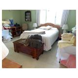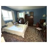 FURNITURE: Antique Colby 2 Twin Bedroom Set, Queen size Bed, Long Dresser/Mirror, Tables & Bookshelf; Queen Bed & Long Dresser/Mirror; White Metal Bed; Cedar Chests; Chairs; Rockers; 3 Piece Bedroom Wall Unit; Dressers; Couch & Chairs; End Tables & Coffee Table; Sofa Table; Settle Cabinet; Secretary; Hall Tree Bench; Book Stand; 3 Desks; Dining Room Table with 6 Chairs; China Cabinet; Standing Mirrors; Custom Made Table & 6 Chairs and more.