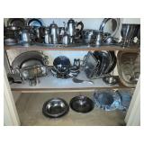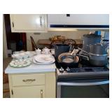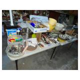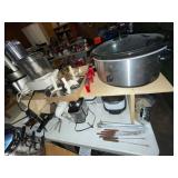KITCHENWARE & SMALL APPLIANCES: Le Cruset, Calphalon, Pyrex, Baking Pans, Cooking, Lenox Stainless Flatware, Wusthof Knives & More, Assorted Small Appliances, and More.