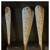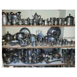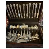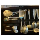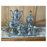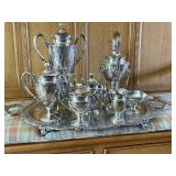 STERLING SILVER and Silver Plate, Antique & Vintage: 7 piece; SS coffee & tea service; small 3 piece SS tea service; SS Salt & Peppers; Tray; Sets of Flatware - Wallace Grand Baroque 56 pieces, circa 1941; Wallace Feliciana, 42 pieces, circa 1969; S. Kirk & Son, Repousse, 19 Pieces; Towle, Old Master, 107 Pieces; Various individual pieces. Silver Plate - Antique Baroque Tea Service and Serving Pieces, Punch Bowl & Cups; Trays and much more. All sterling has been weighed and priced. NO NEED FOR SCALES.