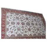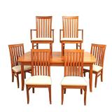 Beautiful 7pc contemporary carved dining set: country cherry finish, table with banded top with (2) 18" leaves, and 6 chairs |