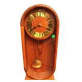 Mid century modern teak shelf clock made in Demark, Westminster design with quartz movement, needs battery |