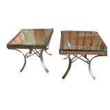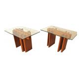 Pair of mid century modern danish teak glass top side tables attributed to Gustav Gaarde |