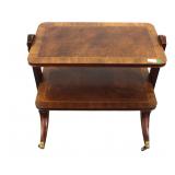 Vintage Baker furniture mahogany 2 tier dumb waiter style table with lion head accents |