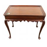 Henkel Harris solid mahogany queen anne tea table with pull out trays with corner damages |