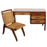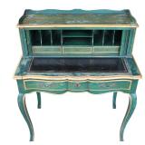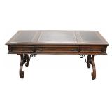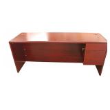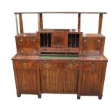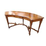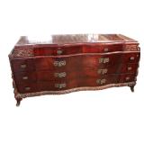 Antique nice model burl mahogany leather top desk credenza with multi compartments, pull out tray |