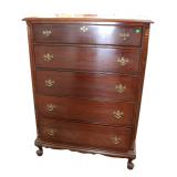 Amerigan Signature furniture contemporary high chest mahogany finish, 5 drawer high chest, good condition, structurally sound, finish is good |