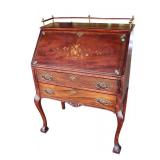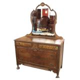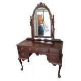 Vintage mahogany queen anne 5 drawer dressing vanity with mirror, original finish |