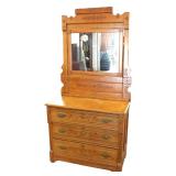 Antique chestnut 3 drawer dresser with mirror with Eastlake spoon carving |