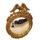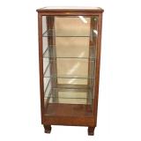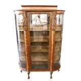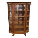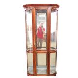 Pulaski furniture 1 door curved glass, mirrored back and lighted display case cabinet with glass shelves in the mahogany finish |