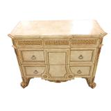 Pulasky contemporary designer decorator 2 drawer chest in the off white and gold colors |