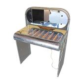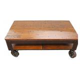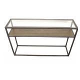 Industrial style 1 draw metal wrap decorator lamp table in good condition, structurally sound, 21"w x 16"d x 25"h |