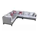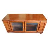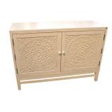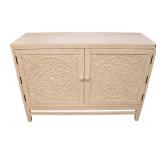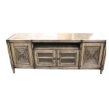 Contemporary 4 door decorator media cabinet in the soft grey |