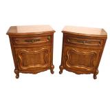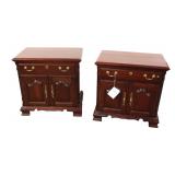 Pair of vintage Ethan Allen furniture solid cherry country 2 drawer night bedside stands |