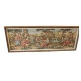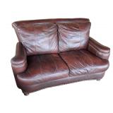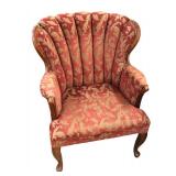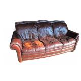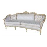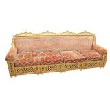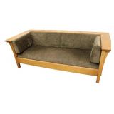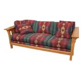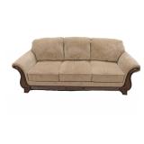 Like NEW upholstered sofa, hide-away bed, mahogany finish frame |
