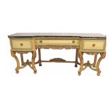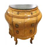 Vintage 2 door marble top style credenza in the walnut, good condition, structurally sound |