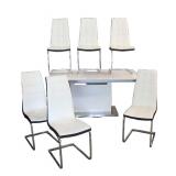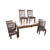 Contemporary 7pc dining room set, walnut finish, faux tile top |