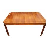 Mid century modern 7pc Benny Linden design teak dining room table and 6 chairs, table with self storing refactory leaves |