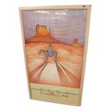Antique walnut two tone 4 drawer dresser with mirror, has etched mirror |