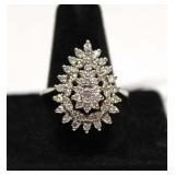 14k white gold raised mount impressive multi diamond cocktail ring, very bright and shiny, 1 to 1.5 t.c.w. total diamonds, approx. 9.5 size |