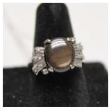 18k white gold and diamond and exotic stone ring with filigree mount, approx. 7.5 size |