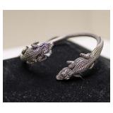 Vintage sterling double alligator 2" dia. bangle bracelet |