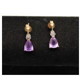 Vintage pair of 14k yellow gold and diamond & amethyst dangle earrings, approx. 1/2" l |