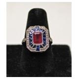 Impressive 1.57 ruby, .45ct sapphire, .34 diamonds 14k white gold ring with illuminated lighted box, very art deco and just in time for Fourth of July, approx. 7 |