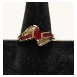 Marquis ruby with ruby and diamond accents in 10k yellow gold ring approx. 7 |